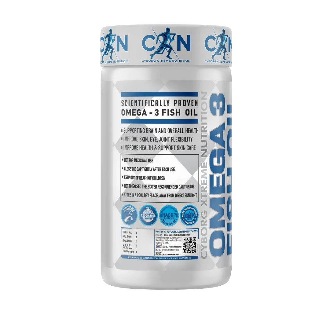 Elevate your wellness regimen with CXN Omega-3 Fish Oil by Cyborg Xtreme Nutrition—a potent blend of EPA and DHA, essential fatty acids your body cannot manufacture. This daily support aids in maintaining heart rhythm, cognitive clarity, joint flexibility, skin hydration, and ocular wellness, all in one softgel. Scientifically aligned with global health recommendations and designed for efficacy and purity.