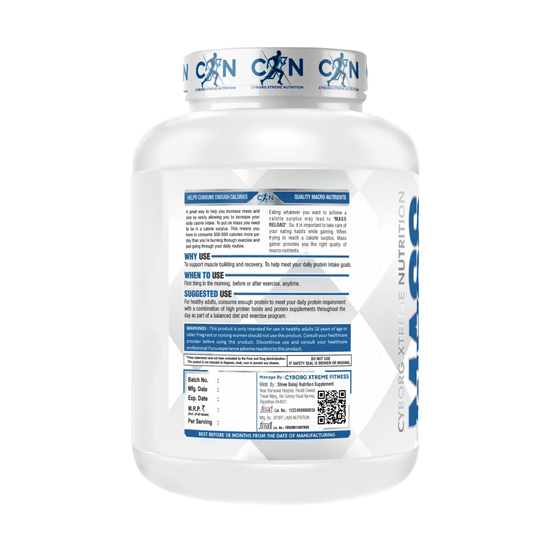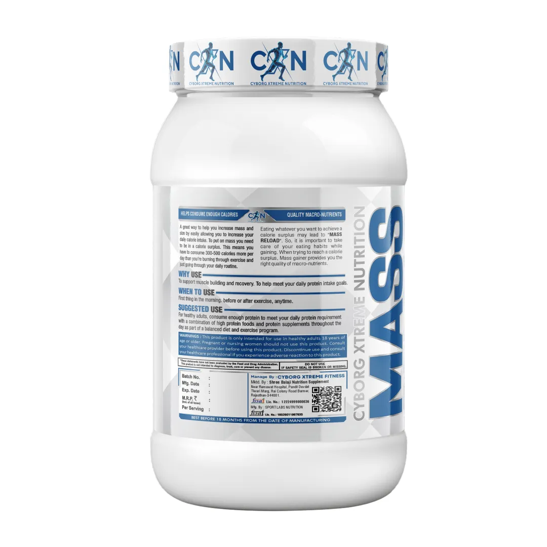 When it comes to building size, strength, and stamina, CXN Mass Reload by Cyborg Xtreme Nutrition is your ultimate fuel. Engineered with a powerful blend of protein, carbohydrates, creatine, and essential nutrients, Mass Reload is designed for athletes, bodybuilders, and fitness enthusiasts who want real results without compromise.